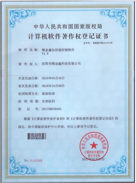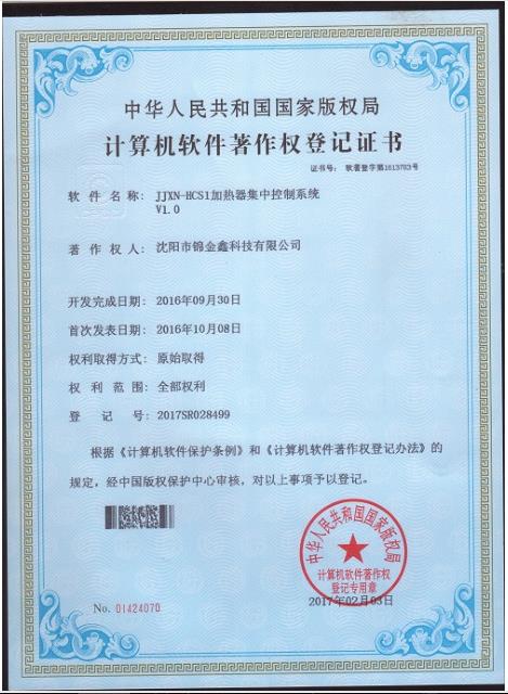 軟件著作權-錦金鑫加熱器控制軟件V1.0