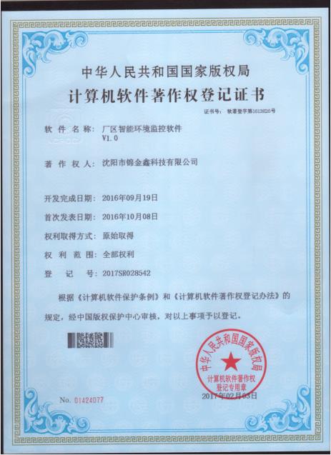 軟件著作權-廠區(qū)智能環(huán)境監(jiān)控軟件V1.0